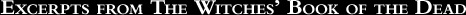 Home | Praise | Excerpts | About Author![]() Want an audiobook version? The Witches' Book of The Dead is available as a digital audiobook at: Amazon.com Audible.com iTunes |